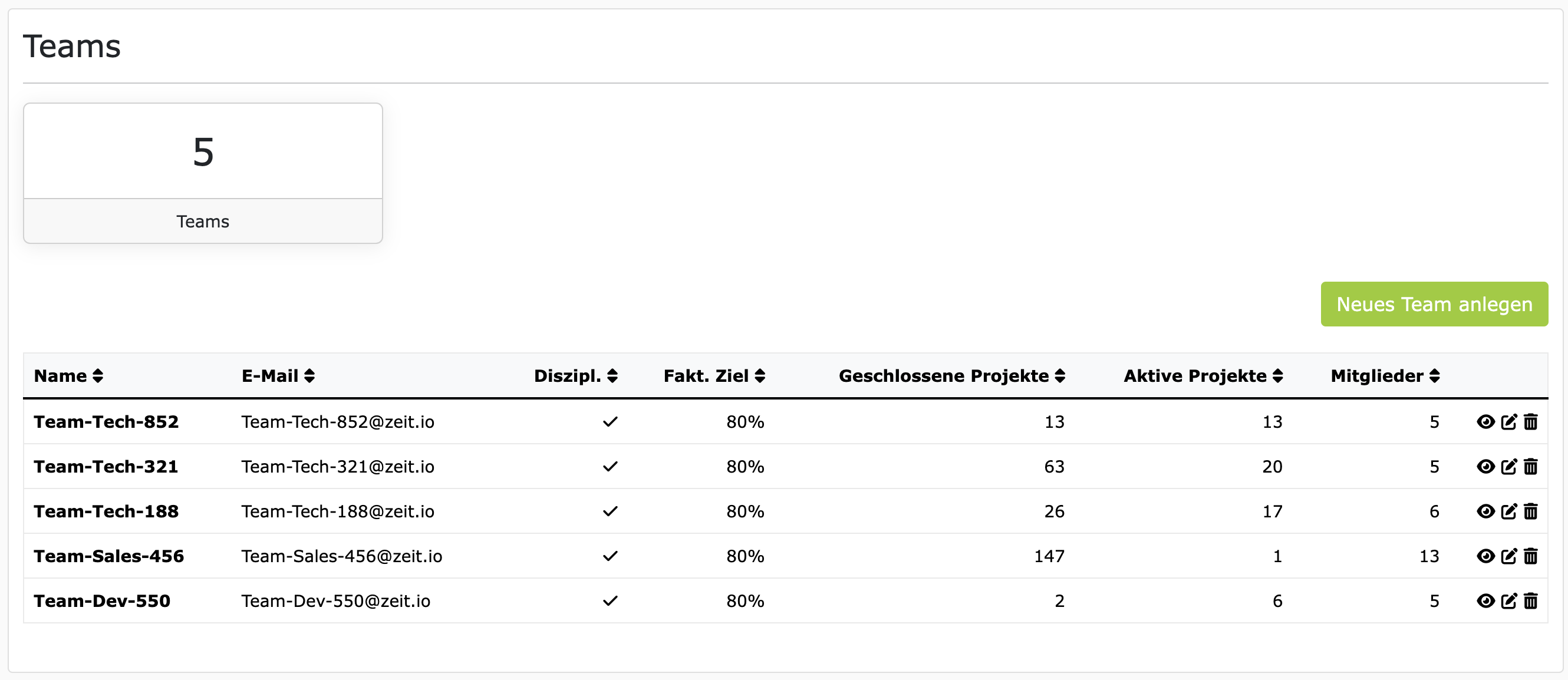 ZEIT.IO Organisation - Dashboard mit Teams