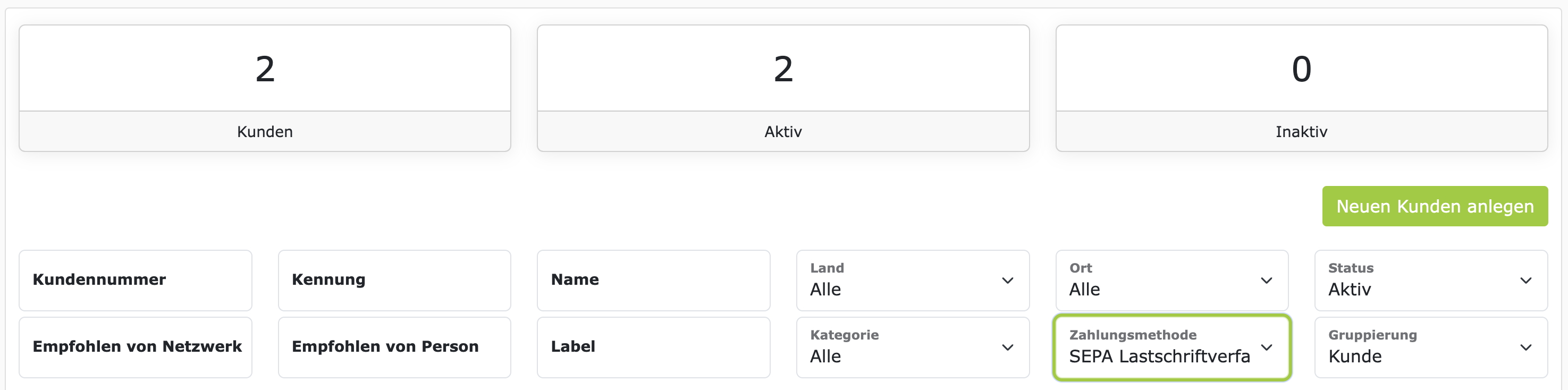 Kunden filtern nach Zahlungsmethode SEPA-Lastschriftverfahren