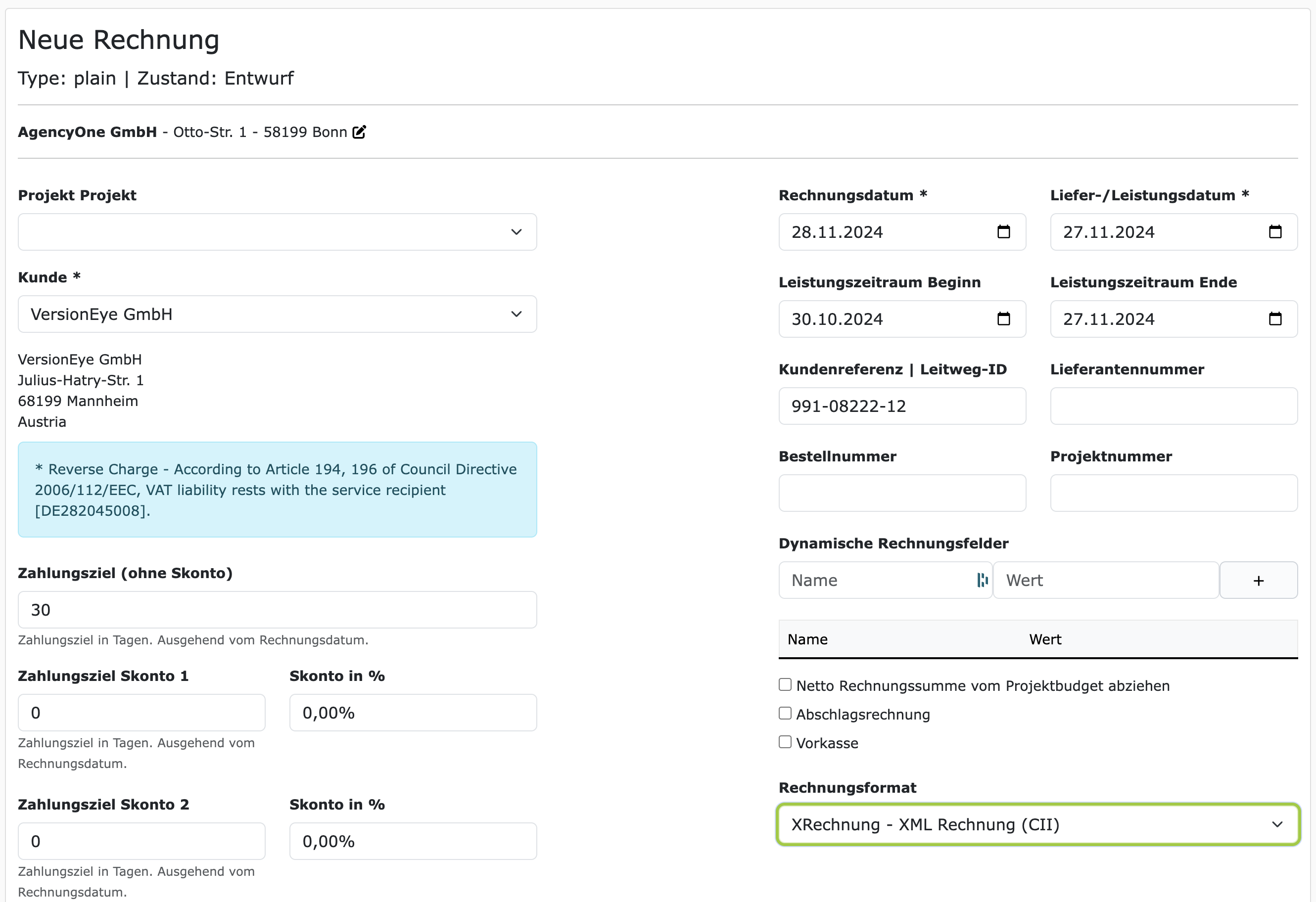 Erstellung einer XRechnung auf ZEIT.IODamit lassen sich auch ZEIT.IO, sowohl XRechnungen als auch ZUGFeRD Rechnungen kinderleicht erstellen und versenden.