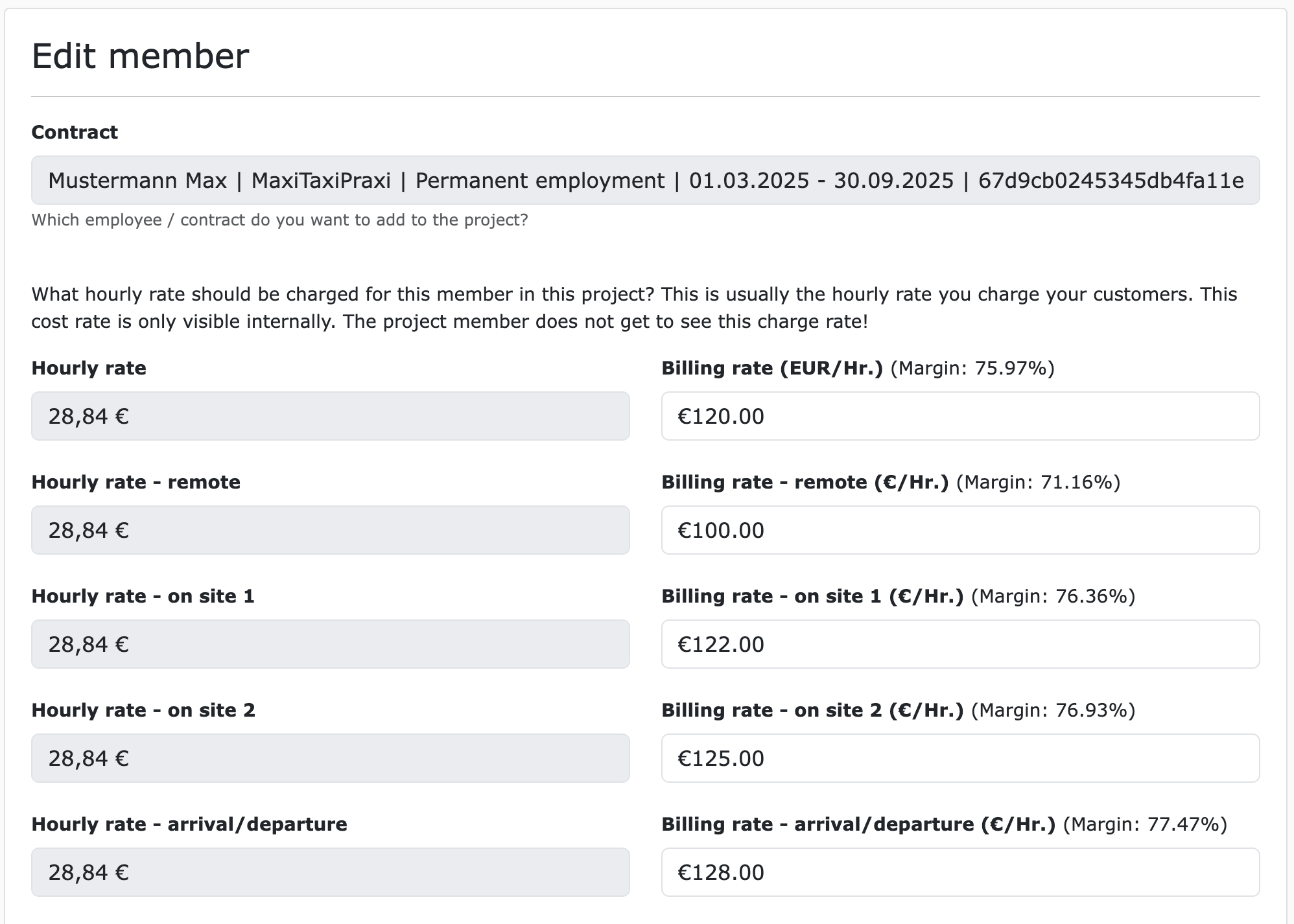 A permanent employee, logically, only ever has one purchase rate. The employee's salary does not depend on whether they work remotely or on-site. Accordingly, you could previously only store one sales rate per employee in the project. But that's changing now!