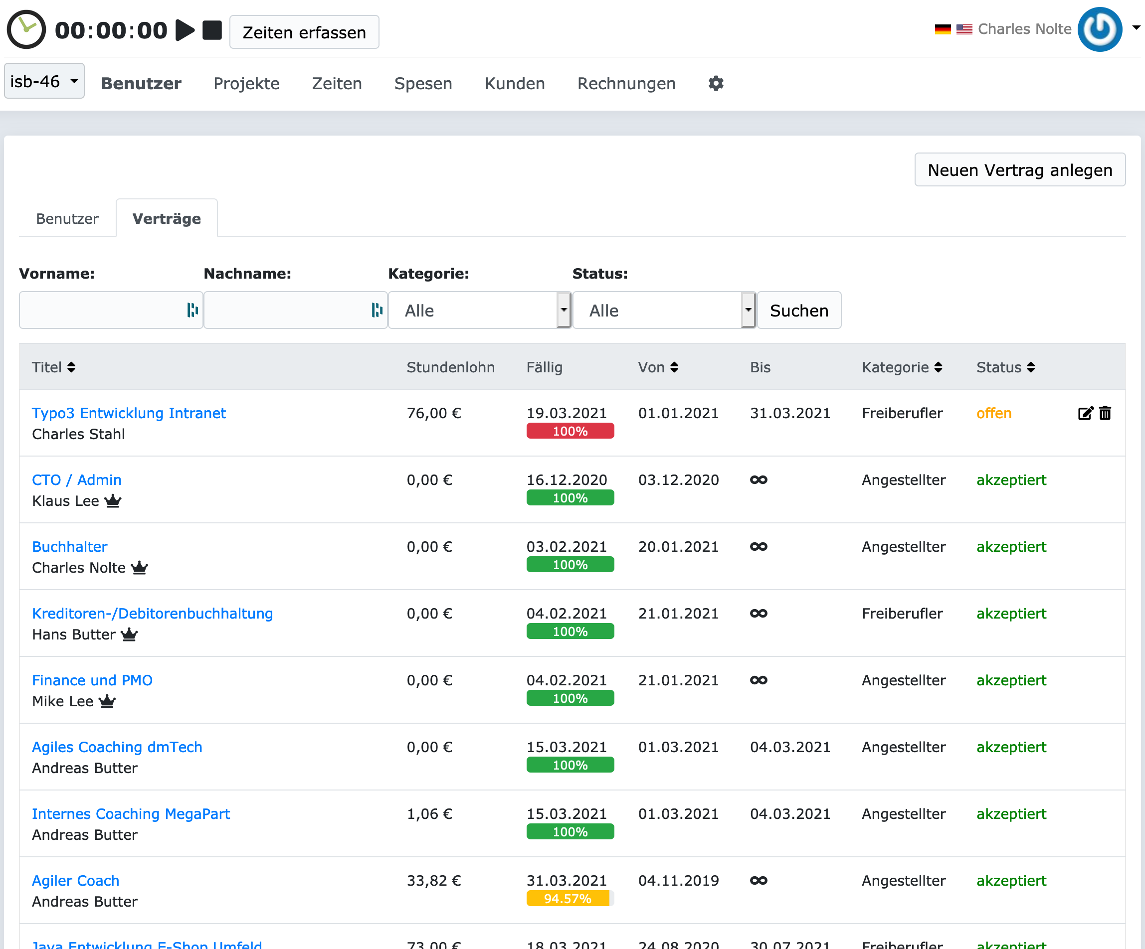 In dem Tab "Verträge" sind alle Verträge einsehbar.
